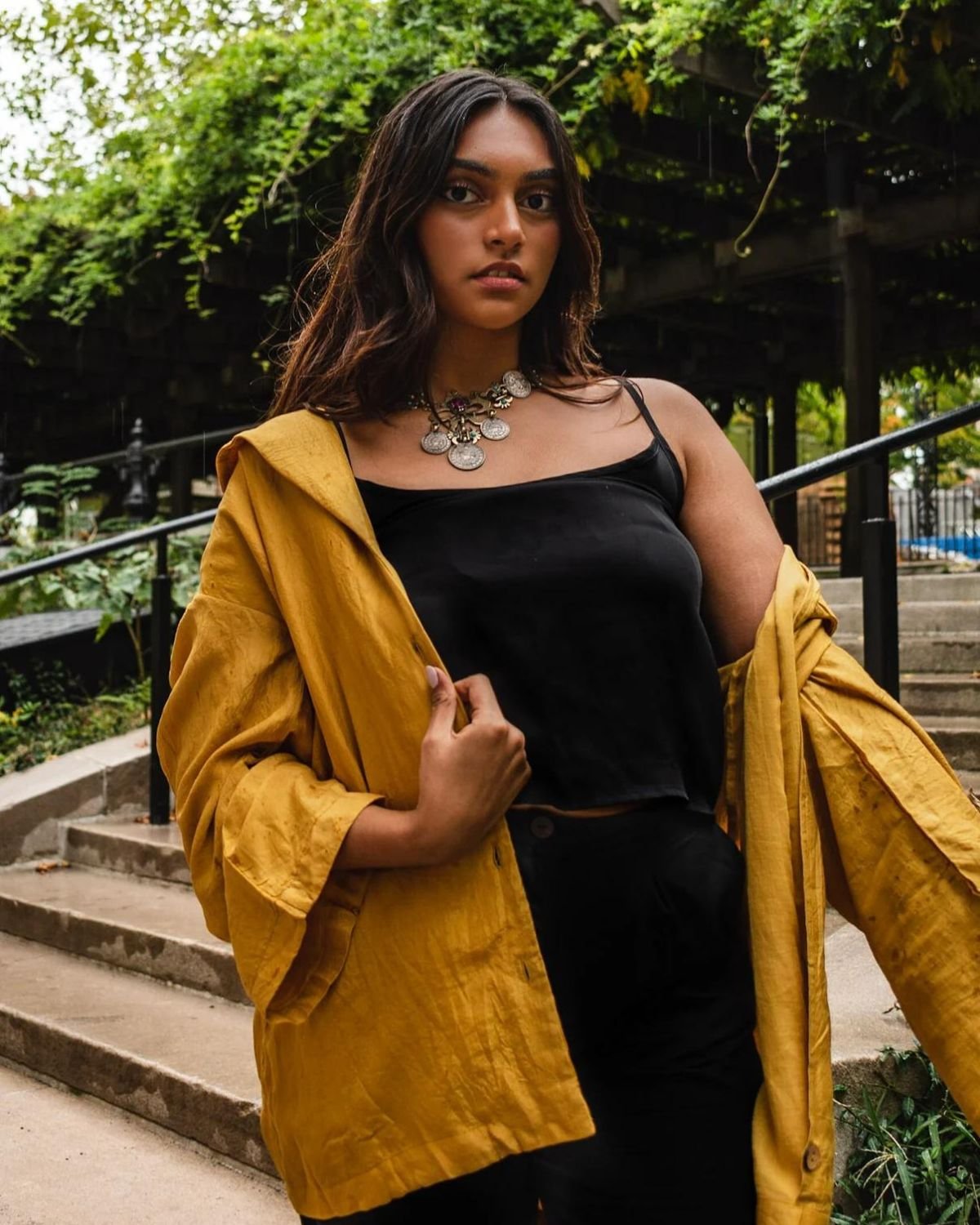 Mustard yellow 2025 jacket outfit