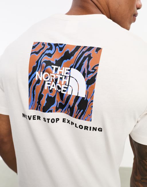• The North Face Redbox marble back print t shirt in off white