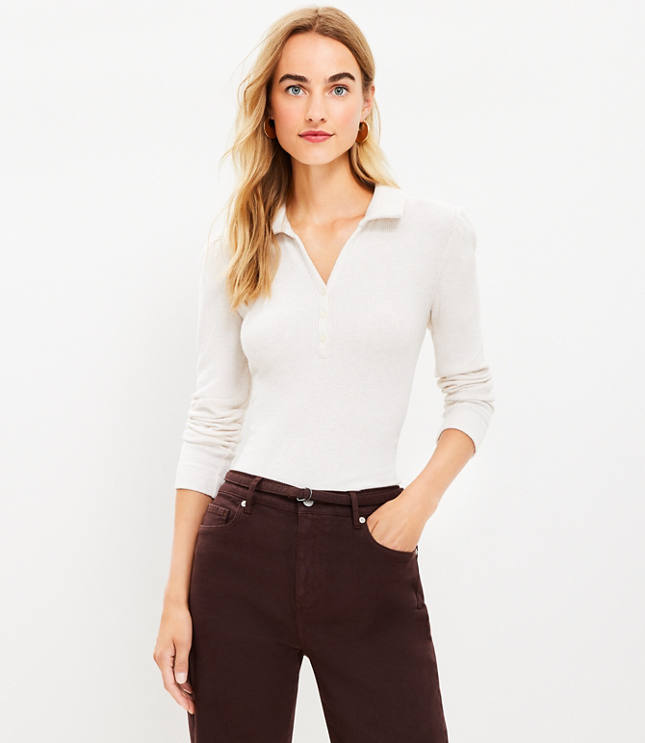 Product Item: Women's petite long 2025 sleeve polo shirts